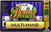Description: Multihand Bonus video Poker, with a selection of 5 , 10 ,25 , 50 ,100 hands